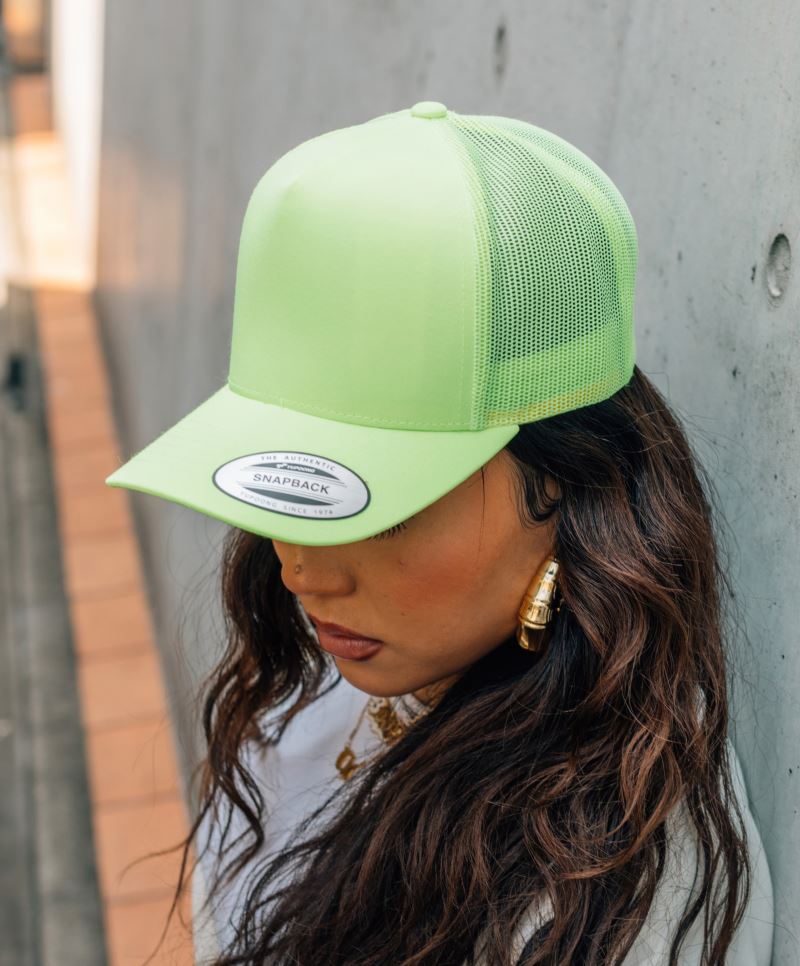 recyceltes Polyester-Aufkleber auf der Rückseite, Frontpanel laminiert, recycelter Snapverschluss, aus recycelten PET Flaschen, eingewebtes "GREEN YOUR HEAD" Etikett am Schweissband, Tear Away Label, Handwäsche, nicht bügeln, nicht trocknergeeignet, nicht chemisch reinigen