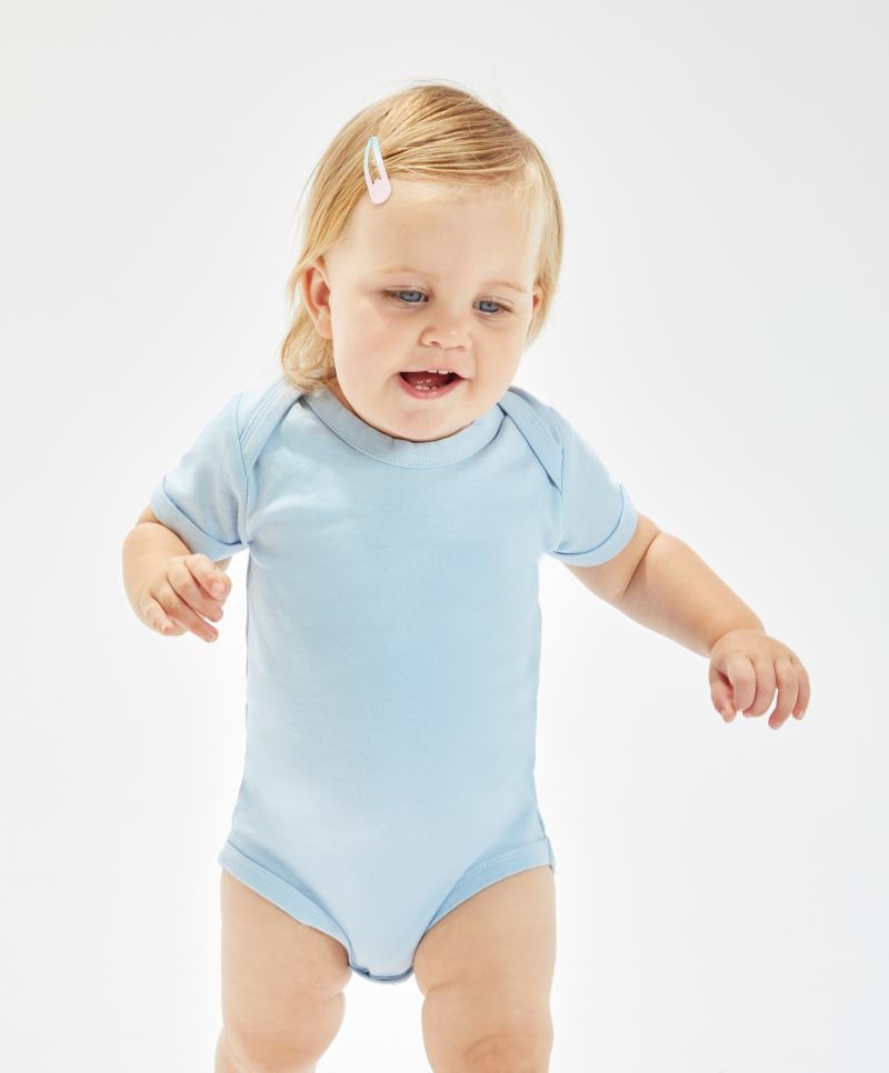 Raglanärmel, Druckknöpfe Ton-in-Ton vorne und im Schritt, nickelfreie Druckknöpfe, weiches dehnbares Material, hergestellt in Afrika, TearAway Label, 40° waschbar, nicht trocknergeeignet, nicht chemisch reinigen