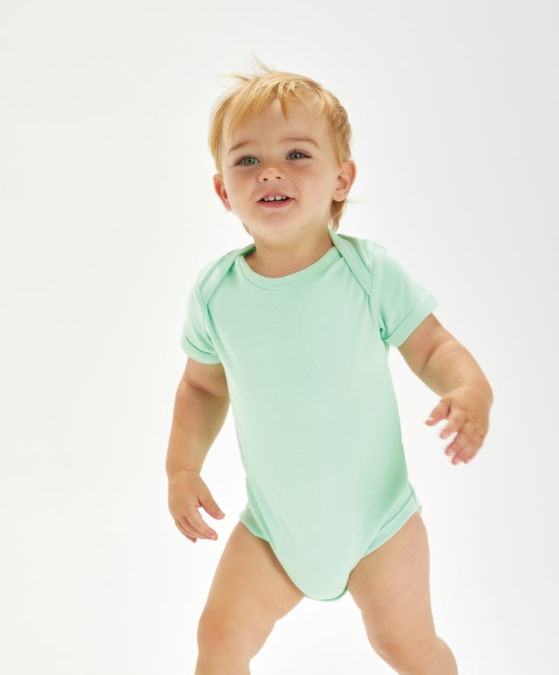 Raglanärmel, Druckknöpfe Ton-in-Ton vorne und im Schritt, nickelfreie Druckknöpfe, weiches dehnbares Material, hergestellt in Afrika, Tear Away Label, 40° waschbar, nicht trocknergeeignet, nicht chemisch reinigen