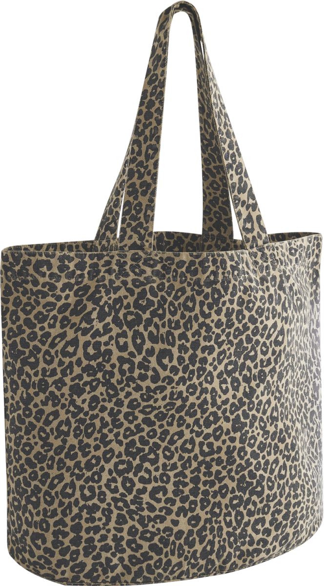 Tragegrifflänge: 60cm, Tragegriffe mit Druckknopfverschluss, Druckknopfverschluss, Innentasche mit Reissverschluss, Leopardenmuster, Veredelungszugang im Futter, kann als Schulter- oder Tragetasche benutzt werden, Tear Away Label, Fassungsvermögen: 25l, Masse: 37x36x20cm, nur mit einem Schwamm reinigen, nicht waschen