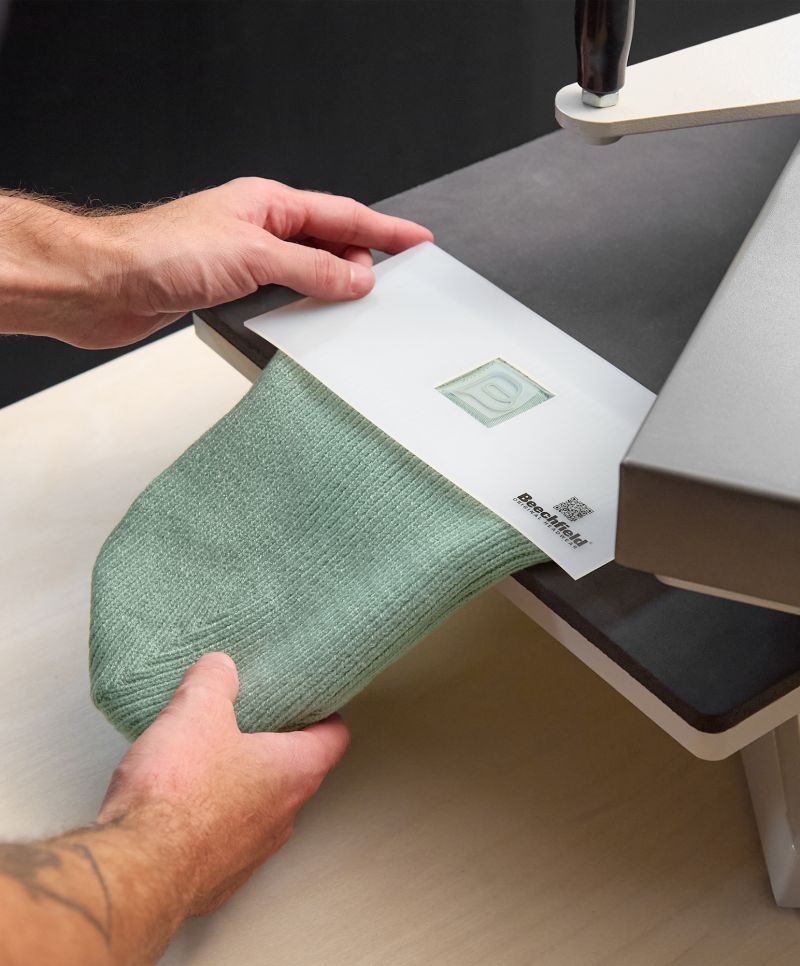 2-lagiger Rippstrick, breiter Umschlag, Patch Ton-in-Ton, Tear Away Label, Handwäsche, nicht trocknergeeignet, nicht chemisch reinigen