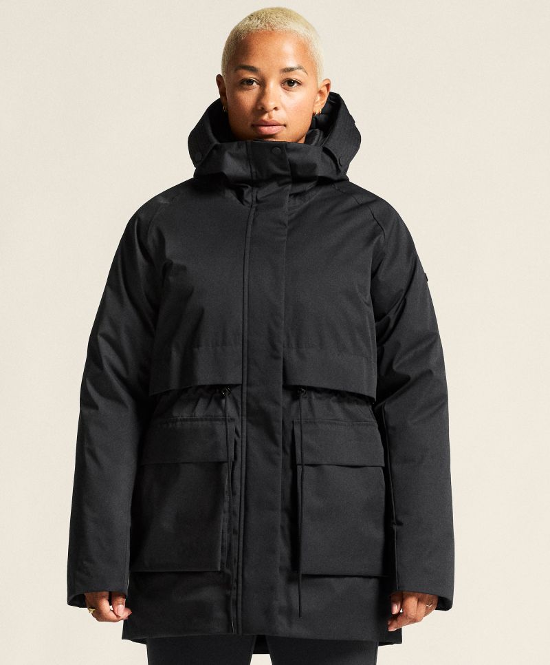 Klassischer Schnitt, wasserabweisend, verstellbare Kapuze, elastische Ärmelbündchen mit Daumenschlupf, verdeckter 2-Wege-YKK Reissverschluss, 2 grosse Vordertaschen mit Patte, Innentasche mit Reissverschluss, verschweisste Hauptnähte, Seitenschlitze mit Druckknopf für höhere Bewegungsfreiheit, Kordelzug an der Taille, wärmeisolierend