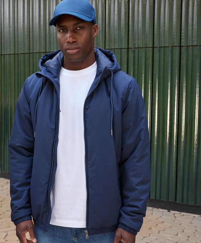 Wasser- und schmutzabweisend, Kapuze mit Kordel, Gummizug an Ärmeln und Bündchen, 2 Seitentaschen mit Druckknopf, Innentasche mit Reissverschluss, Veredelungszugang im Rücken, leichtes Material
