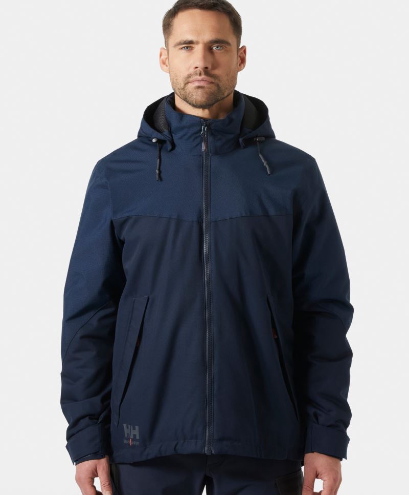 3-lagiges Softshellmaterial, wasserabweisend (8.000mm Wassersäule), umweltfreundliche wasserabweisende Ausrüstung (PFC frei), atmungsaktiv (5.000g/m² in 24h), Krageninnenseite aus Fleece, abnehmbare verstellbare Kapuze mit Kordelzug und Stopper, vorgeformte Ellbogen, Rippstrickbündchen an Ärmel und Saum, Kinnschutz, YKK Reissverschlüsse, 2 Seitentaschen mit Reissverschluss, keine zentralen Schulternähte, zertifiziert nach EN 14058:2017: 2, 3, X, X, reflektierende Details, 40° waschbar, trocknergeeignet bei niedriger Temperatur