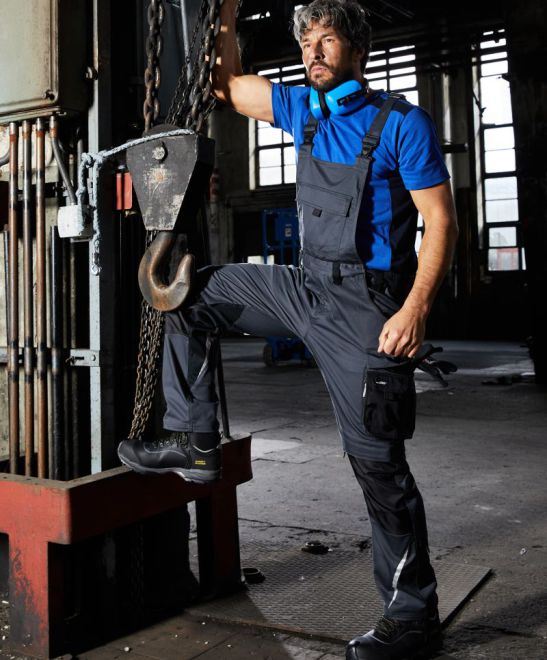 Verstellbarer Latz mit elastischen Trägern, elastischer Bund mit Gürtelschlaufen, YKK Reissverschlüsse, Schubtaschen, diverse Werkzeugtaschen, Kniepolstertaschen verstärkt mit Cordura®, geräumige Tasche mit Reissverschluss am Latz innen, reissfeste 3-fach Naht, Reflexelemente (ohne Schutzfunktion), 40° waschbar, trocknergeeignet bei niedriger Temperatur, im Webshop: kurz 02.133S, mittel 02.133M/02.133X, lang 02.133L