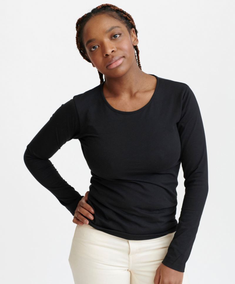 Gerader Schnitt, Rundhalsausschnitt aus Rippstrick, strapazierfähiges Material, weicher Griff, durch Verwendung recycelter Materialien und Verzicht auf erneutes Einfärben werden 99% weniger Wasser verbraucht und CO2 Emissionen um 50% verringert, 40° waschbar, trocknergeeignet bei niedriger Temperatur