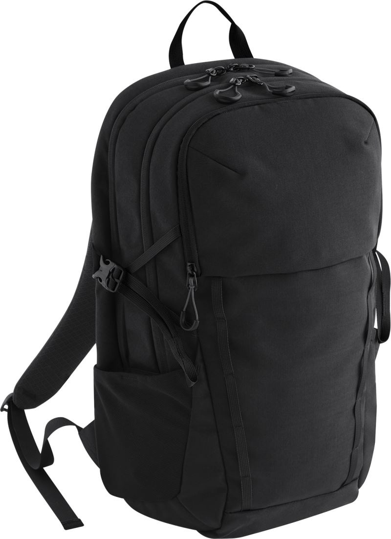 Umweltfreundliche wasserabweisende Ausrüstung (PFAS frei), Tragegriff, Air-Mesh an Rücken und Schultergurten für bessere Belüftung und Komfort, seitliche Eingriffstaschen, Hauptfach mit Reissverschluss, Fach für Trinkblase, Wanderstockfixierung, abnehmbarer wasserdichter Regenschutz, Verwendung von Cordura® Material für Haltbarkeit und Festigkeit, Tear Away Label, Fassungsvermögen: 30l, Masse: 30x54x22cm, nur mit einem Schwamm reinigen, nicht waschen