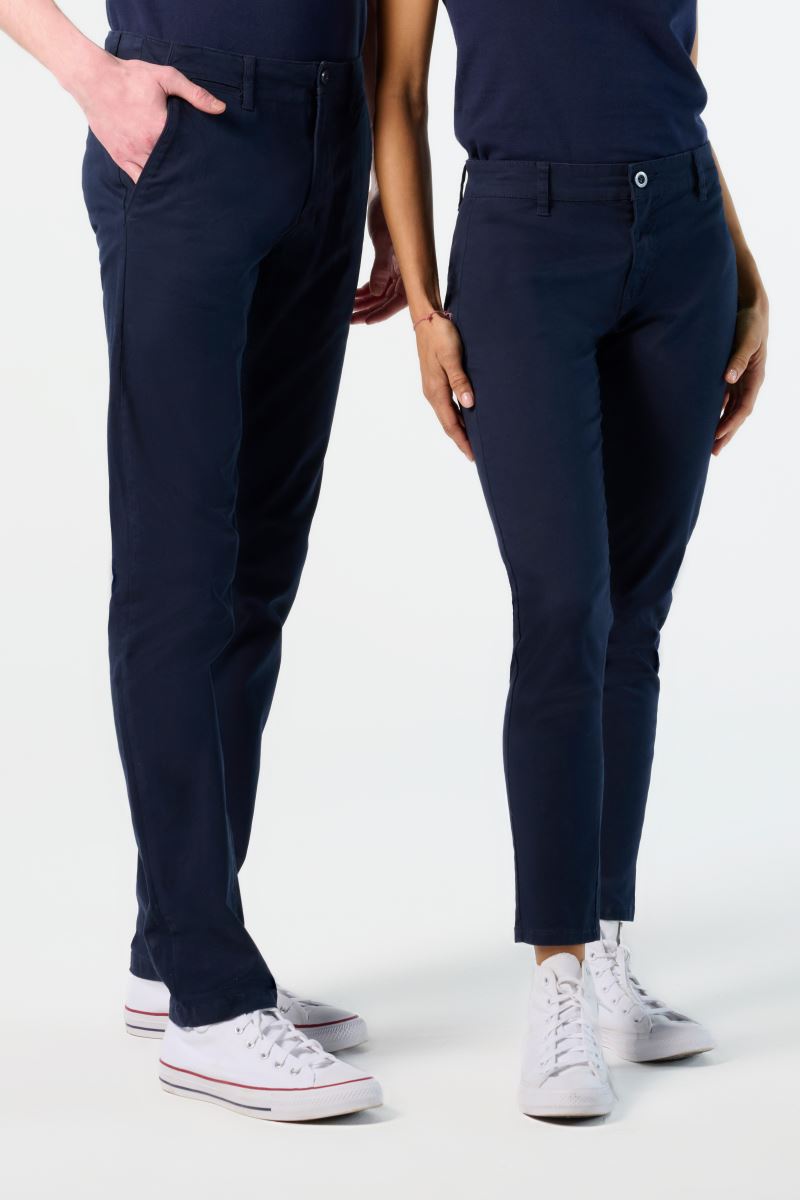 Schmaler Schnitt, fester Bund mit Gürtelschlaufen, Reissverschluss, Gesäss-Einschubtaschen mit Blende, angenehm durch Elasthan, Tear Away Label, französische Grössen: bitte Umrechnung entsprechend Masstabelle, 40° waschbar, nicht trocknergeeignet, 7/8 Länge
