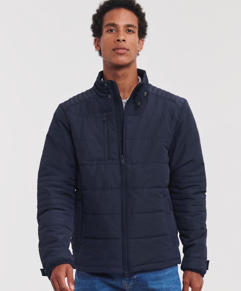 88% recyceltes Polyester, 12% Elasthan, DuPont™ Sorona® Aura Wattierung, Futter: 100% recyceltes Polyester 310T