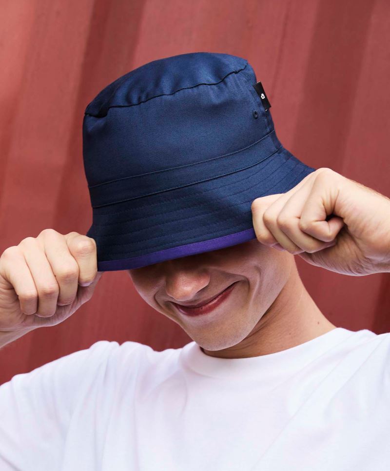 Sustainable replacement version of Bucket Cotton (article: 33.0138), 8 decorative stitching on the brim, cotton sweatband, TearAway label, hand wash, do not iron, not suitable for tumble drying, do not dry clean