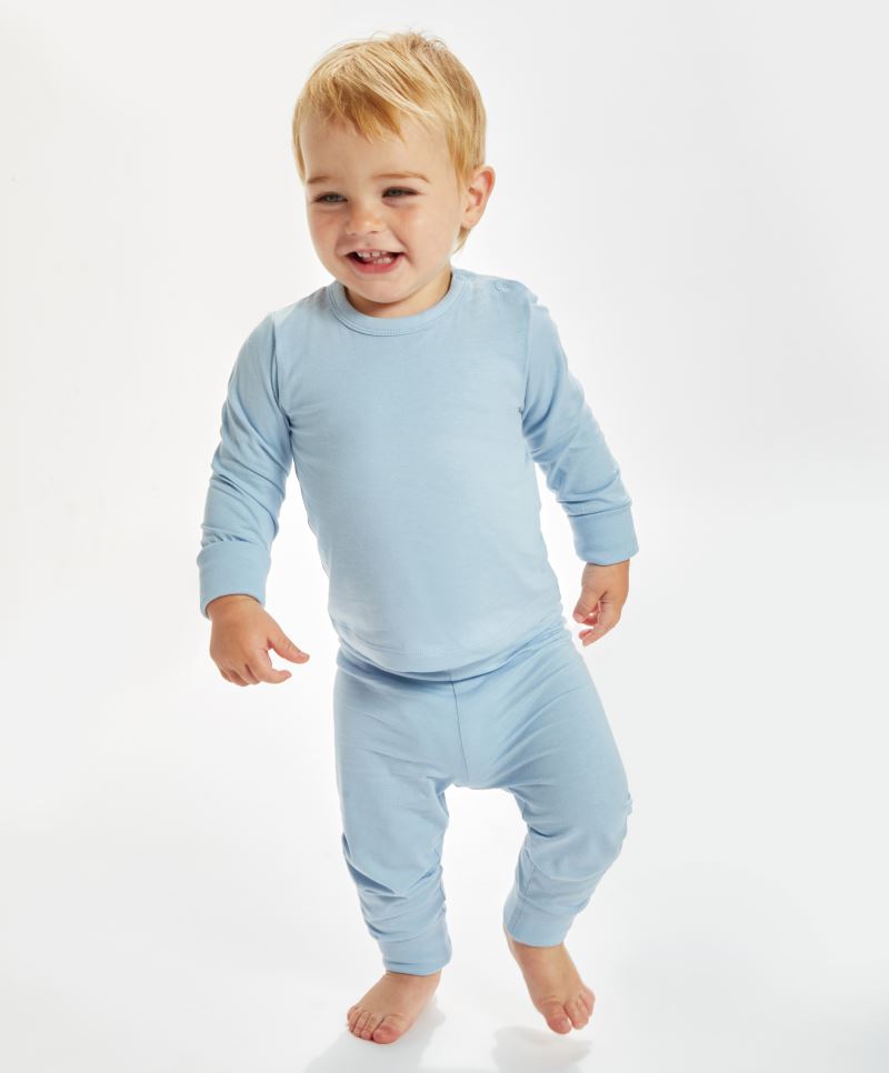Overlapping round neckline, edged sleeve and leg ends, tone-in-tone press studs between legs, nickel free snap fasteners, soft stretchy material, made in Africa, TearAway label, 40° washable, not suitable for tumble drying, do not dry clean