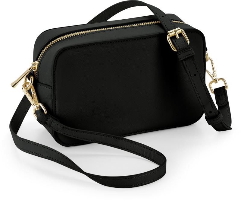 Handle length: 87cm, adjustable hip belt, alternative shoulder strap available separately (article 52.0765), shiny golden zips, slide-in compartment inside, main compartment with zip, soft touch lining, TearAway label, size: 24x14x6cm, sponge clean only