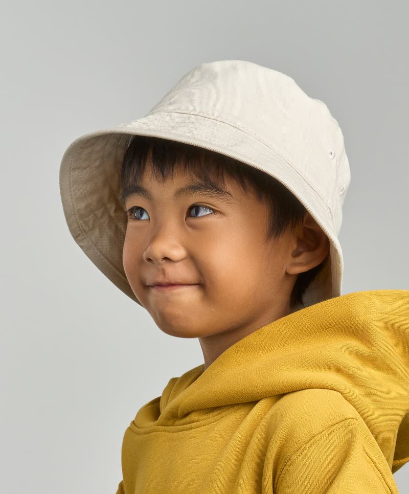 Vintage look, slanted brim with decorative stitching, stitched eyelets, UV protection 50+, TearAway label, in 2 sizes available in, available in sizes S/M=3-6 years and L/XL=7-12 years, sponge clean only, do not wash