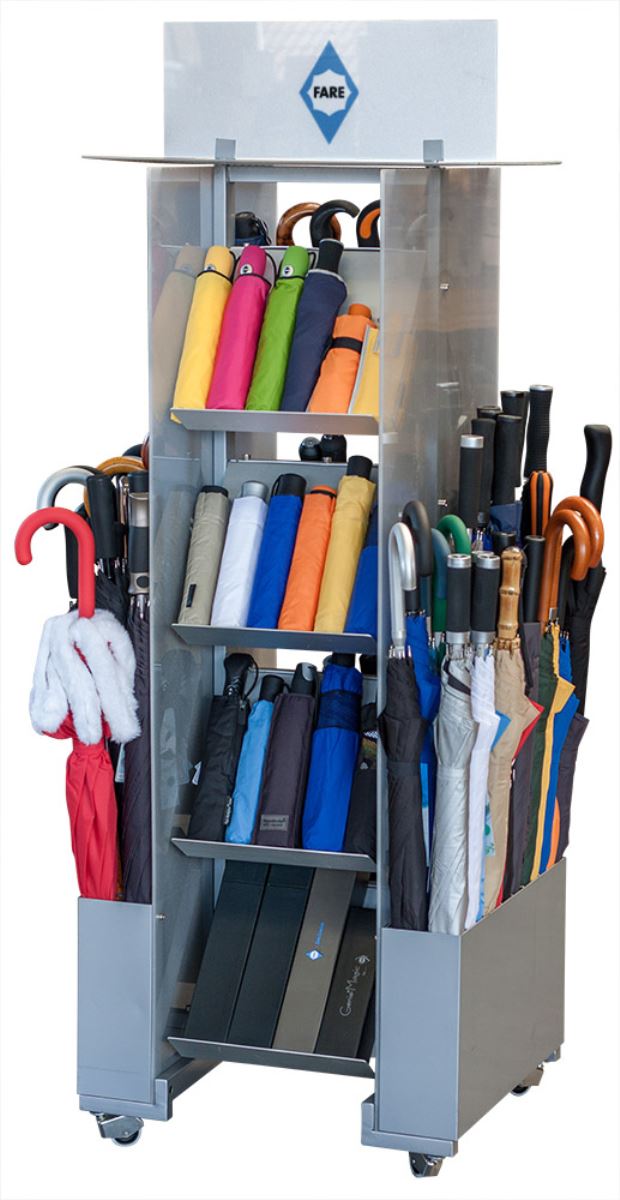2 sides closed with FARE-logo, offers space for 16 regular umbrellas in different lengths, incl. slip-resistant bottom, delivery time approx. 5-10 days, excluded from exchange and return, no stock item, detailed inventory and delivery date information is provided after ordering