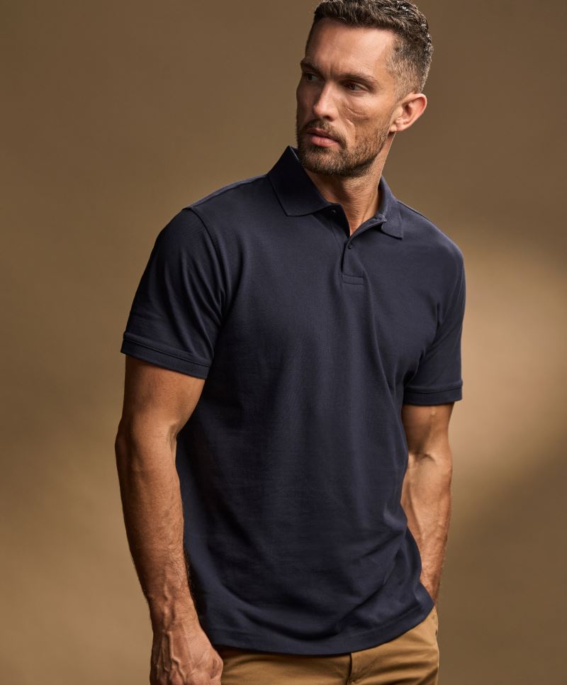 Cut guarantees optimal comfort, knitted polo shirt collar and cuffs, necktape, double seams, shape-retaining, white 95° washable, suitable for tumble drying, colored 60° washable, suitable for tumble drying at low temperature
