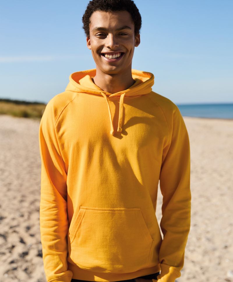 Lined hood with cord, necktape, raglan sleeves, ribbed cuffs on sleeves and hem, kangaroo pocket, brushed inside, EU Ecolabel, SA 8000, neutral size label, 60° washable, 40° wash recommended