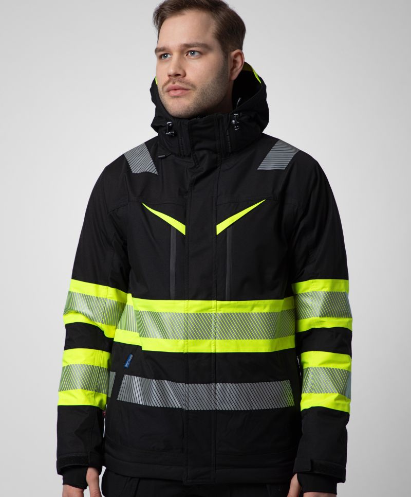Stand-up collar, ribbed cuffs on sleeves and hem, 2 side pockets and 1 breast pocket with zip, sizes XS-L certified according to EN ISO 20471 class 2, sizes XL-3XL according to EN ISO 20471 class 3, integrated reflectors for increased flexibility and breathability, 40° washable, not suitable for tumble drying