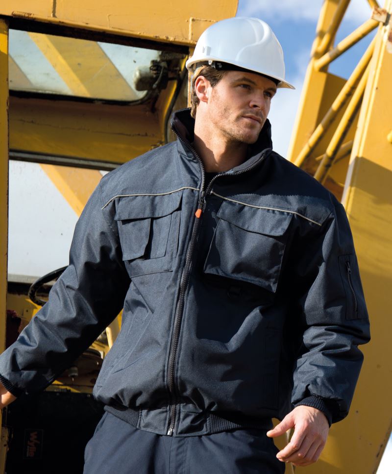 High-gloss Hydrafort fabric, waterproof (5,000mm water column), stand-up collar, ribbed cuffs on collar, sleeves and hem, 2 side pockets with press stud, sleeve pocket with zip, integrated safety pocket, contrasting inner lining, decoration access in lining, D-ring