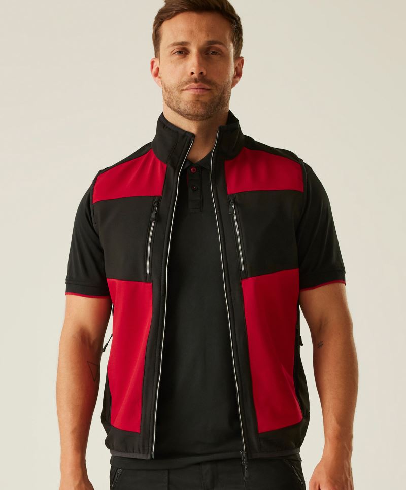 Water repellent finish, edged elastic cuffs on sleeves, hem and collar, 2 side pockets with zip, 2 breast pockets with zip, reflective detail