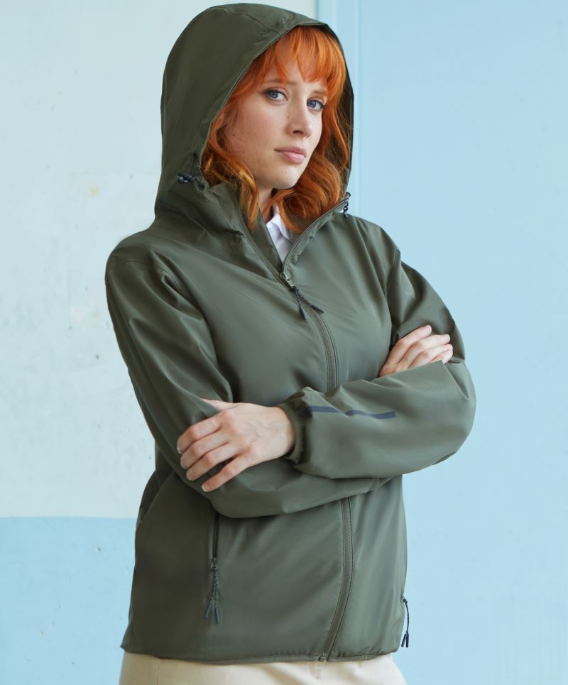 Classic cut, water repellent (2,000mm water column), breathable (2,000g/m² in 24h), detachable adjustable hood, adjustable hem with shockcord, full-length lined front zip, 1 inner pocket, 2 side pockets, decoration access at the hem, 30° washable, do not iron, not suitable for tumble drying, do not dry clean
