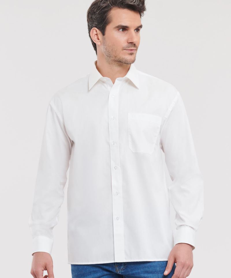 Tailored fit, Kent collar, cuffs adjustable with 2 buttons, non-iron, 40° washable, suitable for tumble drying