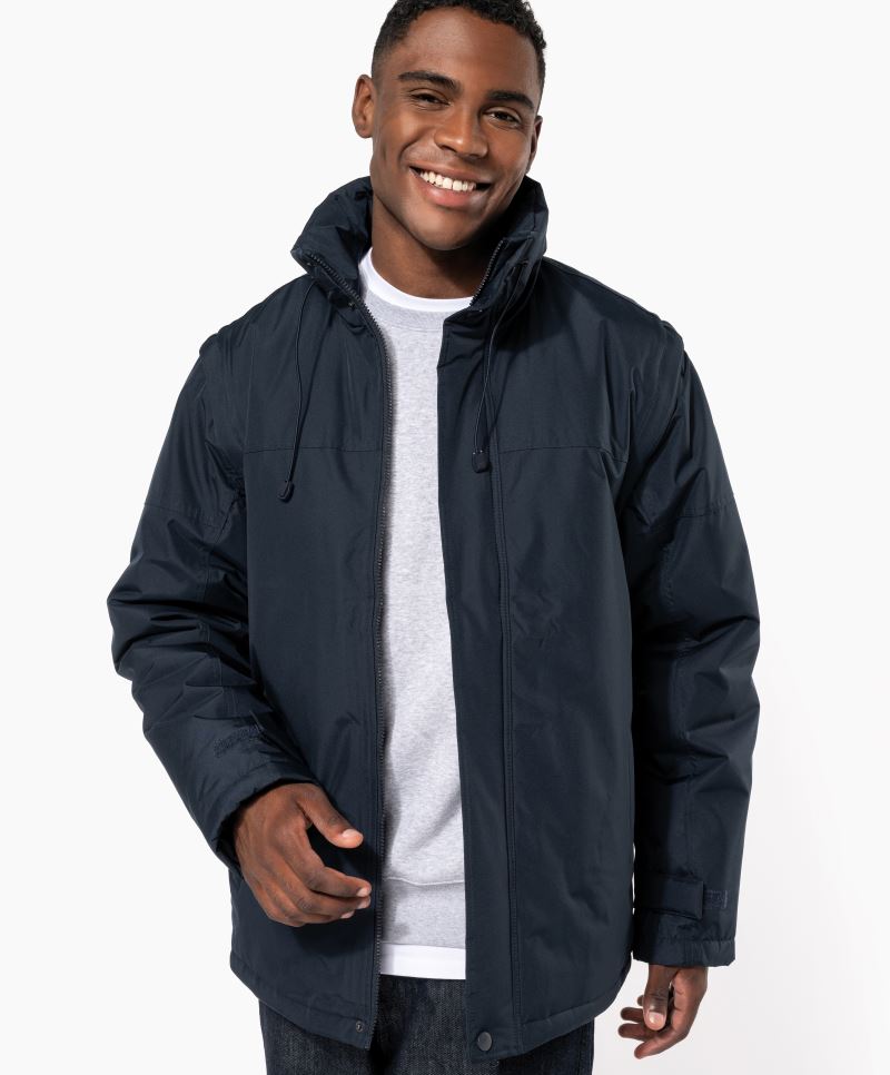 Idrorepellente, colletto con cappuccio integrato, polsini regolabili, cerniera completamente coperta, 2 tasche esterne, imbottitura a rete interna, cordoncino elastico, accesso di finitura nella zona schiena, con imbottitura termica in maglia sgrossata
