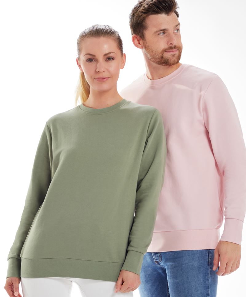 80% cotone pretrattato con tecnica ringspun, 20% poliestere riciclato, heather grey: 92% cotone, 8% viscosa, altri colori heather: 60% cotone, 40% poliestere, French Terry (non arruvidito all'interno)