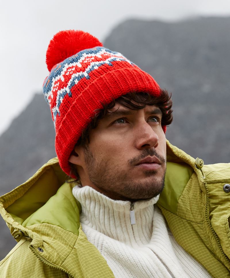 Risvolto flessibile, modello senza tempo Fair Isle, pompon tono su tono, maglia morbida, etichetta Tear Away, lavaggio manuale, no Stiro