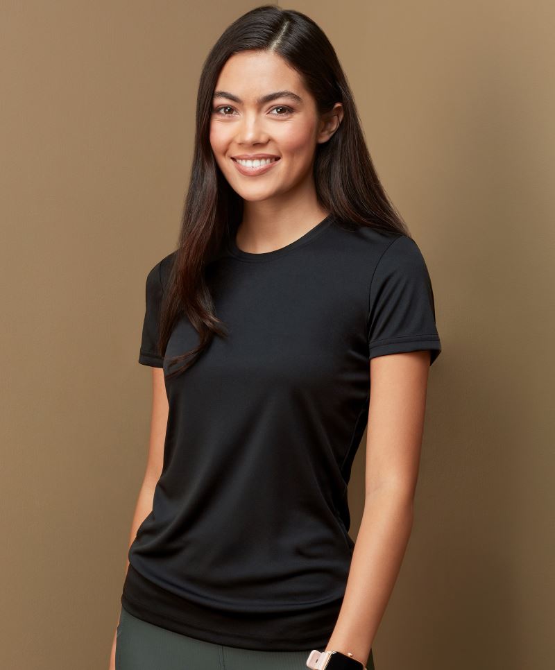 Vestibilità sfiancata, traspirante, bordino al collo, cuciture doppie su spalle, scollatura e giromanica, a regolazione d'umidità, ad asciugatura veloce, lavabile a 30°, non adatta all'asciugatrice
