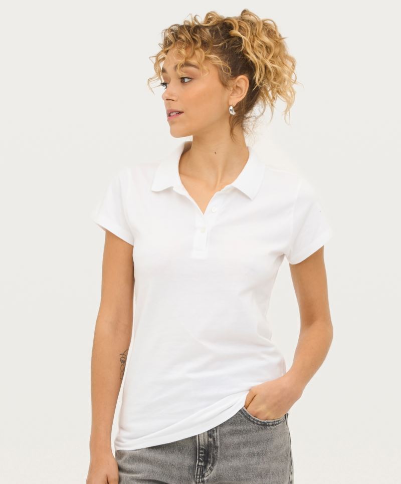 Vestibilità leggermente sfiancata, colletto Polo a maglia e bordini delle maniche con strisce in colore a contrasto, abbottonatura sottile e lunga da 5 con bottoni tono su tono, bordino al collo, spacchi laterali, lavabile a 40°, non adatta all'asciugatrice