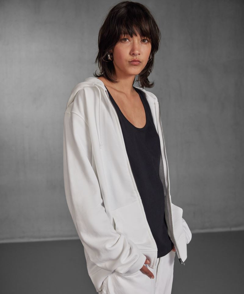 Vestibilità leggermente sfiancata, cappuccio a 2 strati con cordoncino, bordino al collo, bordini con elastan, tasca a marsupio, felpato, etichetta Tear Away, lavabile a 40°, non adatta all'asciugatrice