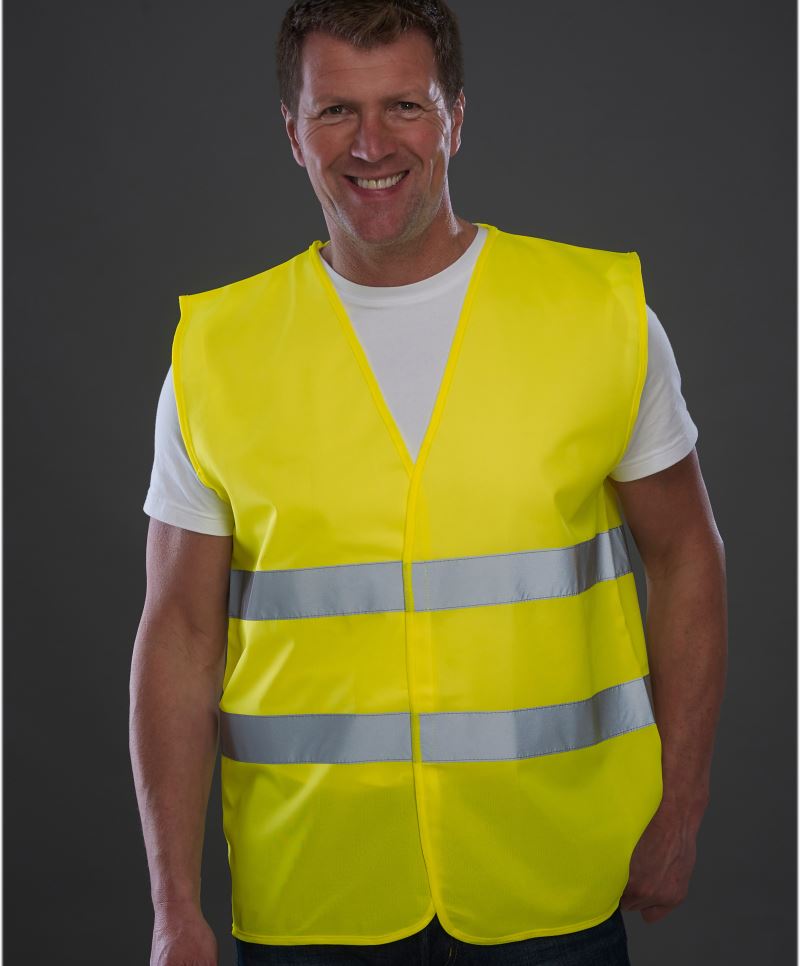 Pratica chiusura a strappo, EN ISO 20471:2013 Classe 2, strisce riflettenti oblique sulla parte anteriore e quella posteriore, lavabile a 40°, no Stiro, non adatta all'asciugatrice