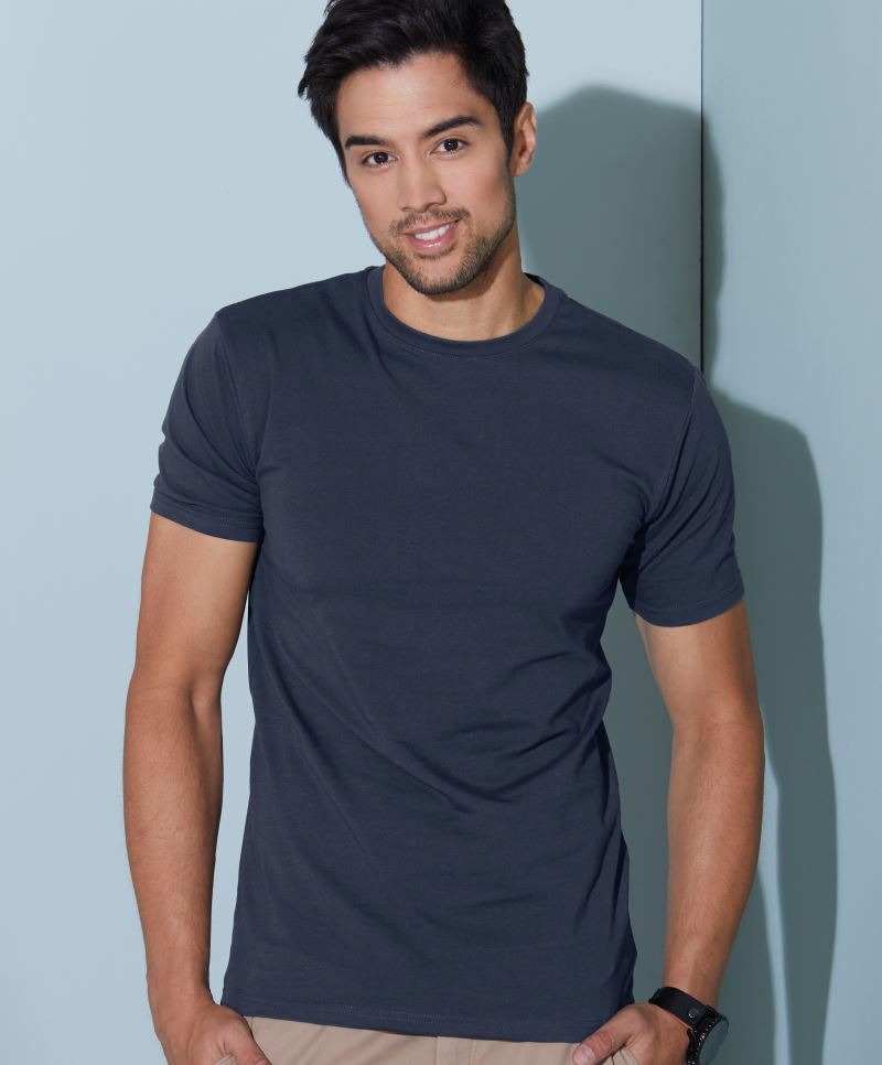 95% cotone pettinato con tecnica ringspun, 5% elastan, Single Jersey