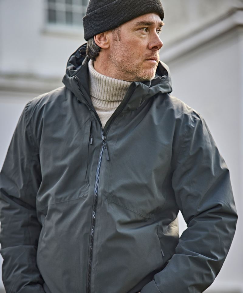 Idrorepellente (colonna d'acqua di 3.000 mm), cerniere lampo impermeabili all'acqua, traspirante (3.000 g/m² in 24h), cappuccio regolabile con cordino elastico, bordini delle maniche regolabili con bottoni a pressione, 2 tasche laterali con cerniera lampo, lavabile a 40°, no Stiro, non adatta all'asciugatrice, non lavare con trattamento chimico