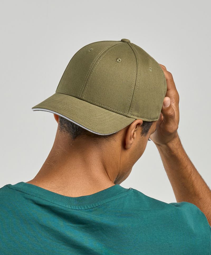 Visiera curva, sandwich in colore a contrasto, nastro di stoffa con chiusura in metallo, stoffa resistente, elastica, assorbimento particolarmente buono, volume: 58 cm, lavabile a 30°, biancheria delicata, no Stiro, non adatta all'asciugatrice, non lavare a secco