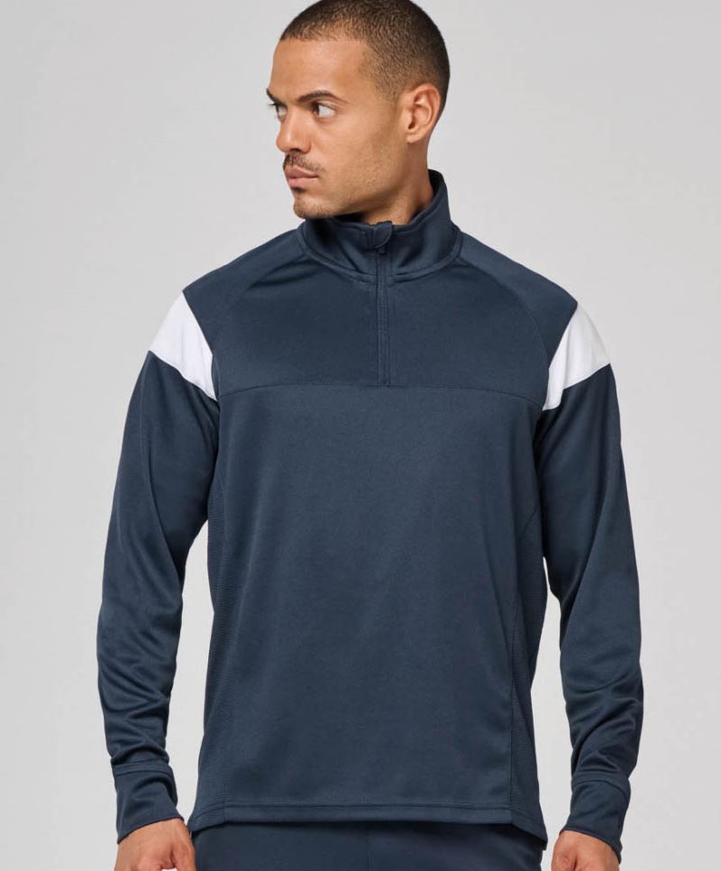 Taglio diritto, taglio sul petto e sulle spalle in colore a contrasto, colletto alla coreana con protezione per il mento, maniche Raglan, inserti in tessuto testurizzato sui lati e sulla schiena, cerniera in nylon, 2 tasche laterali con cerniera lampo, superficie opaca, etichetta TearAway, lavabile a 40°, No Stiro, non adatta all'asciugatrice, non lavare con trattamento chimico
