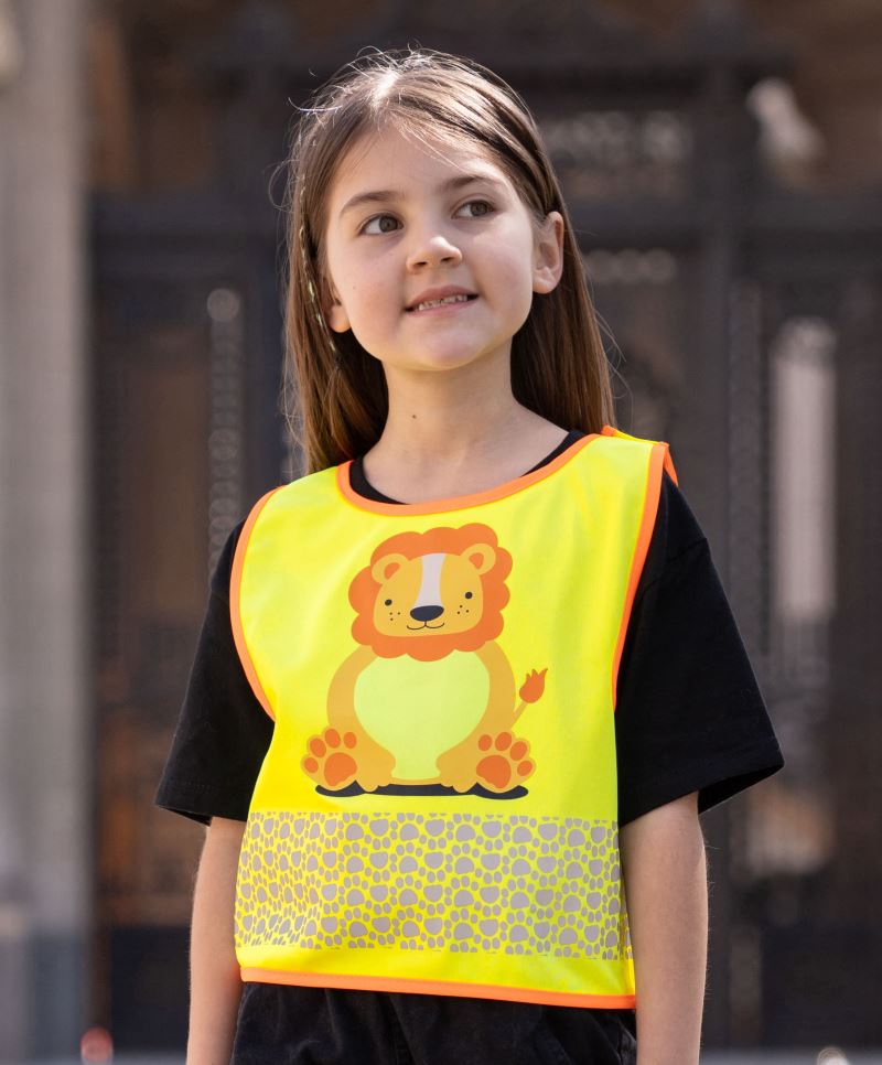 Motivi diversi, cerniera lampo tono su tono, neon green/ufo, hi vis yellow/t-rex, neon pink/unicorn certificato secondo EN 17353 Type AB3, blue/tractor certificato secondo la norma EN 17353 Type B3, tessuto a fantasia con rivestimento riflettente, XXS 3-4 anni, XS 5-7 anni, S 8-10 anni