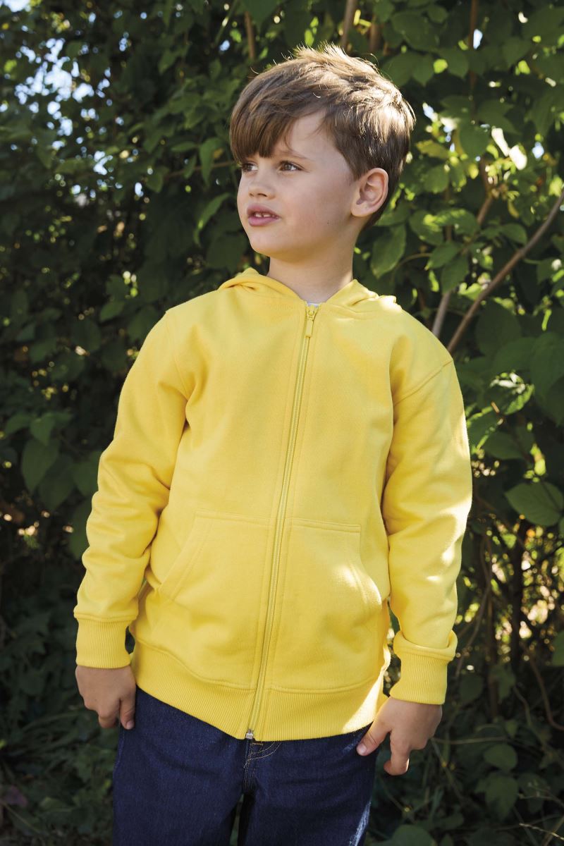 Cappuccio a 2 strati con cordoncino, bordino al collo, bordini in maglia a coste su maniche e orlo, cerniera YKK, tasca a marsupio, felpato, EU Ecolabel, SA 8000, lavabile a 60°, adatta all'asciugatrice a temperatura bassa, 40° lavaggio consigliato