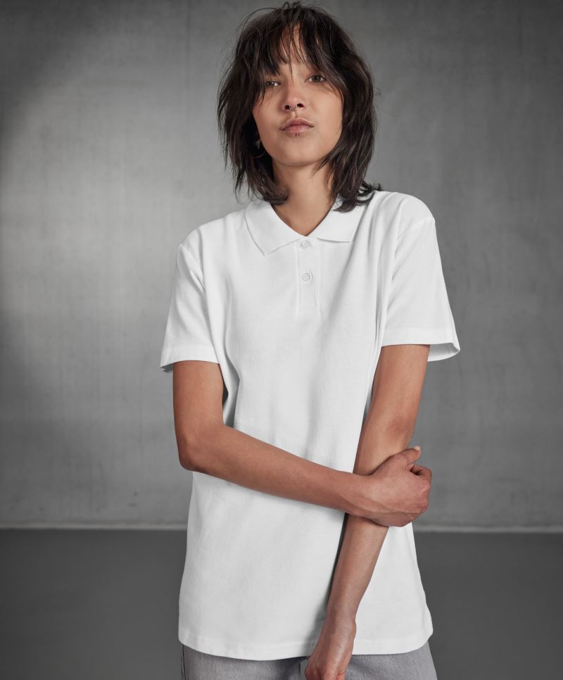 Vestibilità sfiancata, collo a maglia a coste, abbottonatura rinforzata con 4 bottoni tono su tono, bordino al collo, bordo diritto con spacchi laterali, etichetta Tear Away, lavabile a 40°, non adatta all'asciugatrice