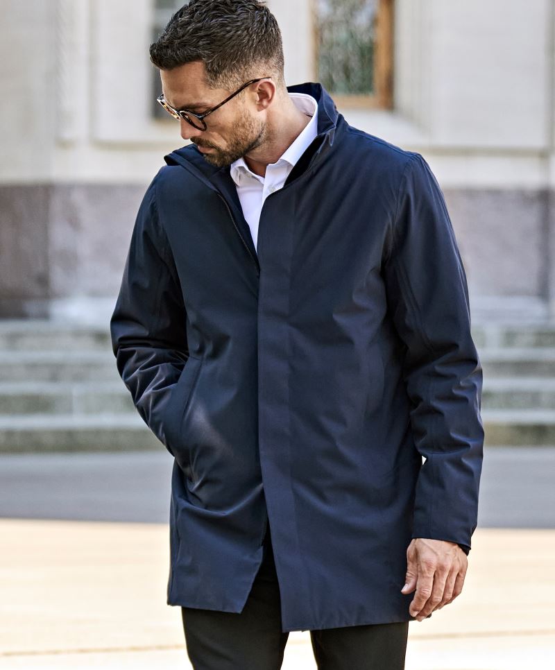 Antivento e impermeabile all'acqua, colonna d'acqua di 1.500 mm, collo alto all'interno con morbido pile, pannello antivento con cerniera lampo e bottoni a pressione, cappuccio riponibile con cordoncino, bordini delle maniche regolabili con chiusura a strappo, 2 tasche esterne con cerniera lampo e copertura, 1 tasca interna, accesso di finitura, etichetta Tear Away, lavabile a 30°, biancheria delicata, no Stiro, non adatta all'asciugatrice