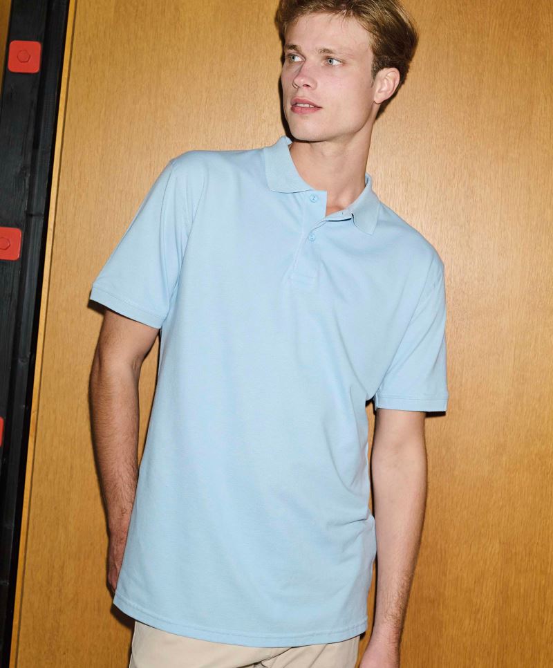 Colletto e bordini delle maniche in maglia a coste, tocco morbido, produzione vegana certificata senza sostanze ausiliarie animali, calcolo LCA (Life Cycle Assessment) per la valutazione dell'impatto ambientale durante l'intero ciclo di vita, etichetta con le misure neutra, lavabile a 60°, adatta all'asciugatrice a temperatura bassa